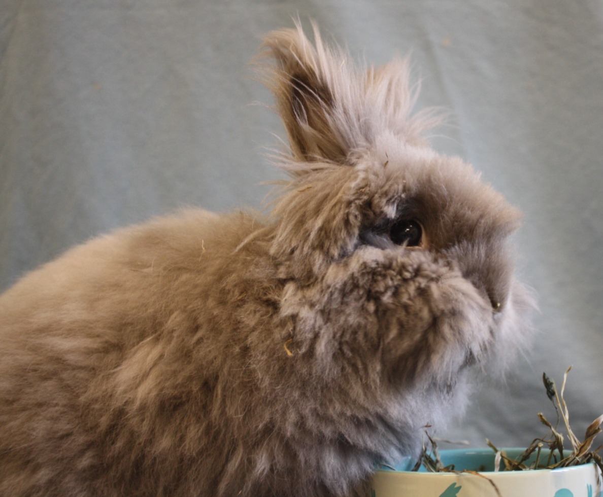 We zoeken een binnenverblijf, vriendinnetje én iemand die interesse en/of ervaring heeft met trimmer van konijnen (of hem door een trimmer laat knippen).
